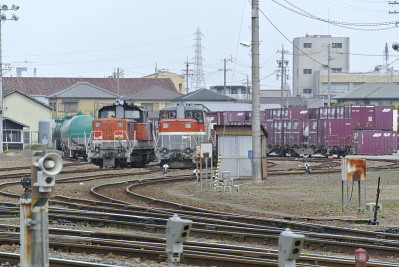 2015年11月20日、関西本線【南四日市】にてデンスケが撮影!愛知機関区(旧:稲沢機関区)所属のDD51のみが現在、定期運用を持ってます。ここ、南四日市を発着する貨物は1日1往復のみです。DD51の終焉も近いか? 写真は発車を待つスノープロウ付きDD51(割と貴重なんです。)