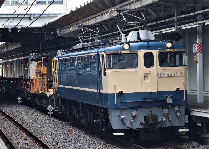 2020年6月18日、吉川美南駅にてデンスケが撮影!JR東日本持ちのEF65 1115が牽引する新津工臨〔エ9862〕です。新小岩に向かいます。