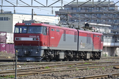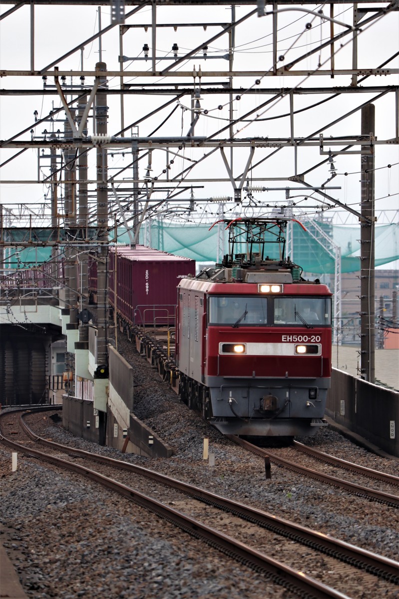 首都圏と北海道間のスピードアップを図るために計画・製造された交直両用電気機関車《EH500》です。 埼玉新都心停車中を撮影!一度、大宮駅で電車待ちの折りコイツが低速で通過したがデカイやらウルサイやらでまわりの客もビックリしていたよ!