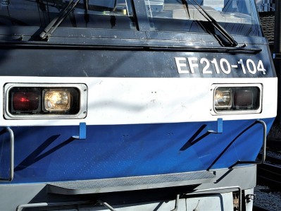 2020年2月13日、東海道本線・富士駅にてデンスケが撮影!停車中の機関車をホームで間近かに見られるってありそうで無いですよね!ここ富士駅では数本の列車が入換のため停車するので夢のような光景を見られます。EF210−104は吹田機関区所属の100番台初期車ですね。従ってシングルアームパンタではなく下交差式のクロスパンタ車になります。
