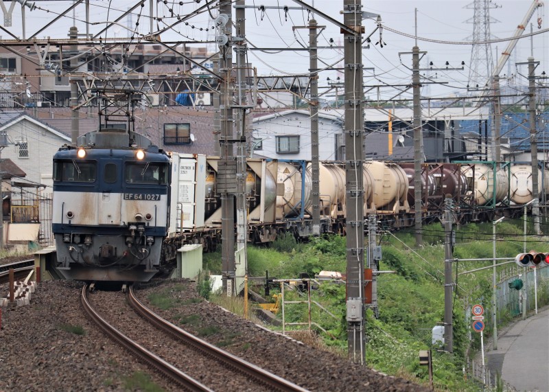 EF64 1027〔3075レ〕2020年6月3日、東川口駅にてデンスケが撮影!EF64 1000番台 かつては寝台特急『出羽』や『あけぼの』を牽引してましたね!JR東日本のEF64 1000は工臨や甲種鉄道車両の牽引がメインですが愛知機関区の64は定期で貨物運用を持ってます。伯備線の64も愛知機関区の所属です。この画像は鹿島スタジアム発→東京タを牽引している1027号機です。東京タ以北でEF64 1000が定期運用で見られるのは、この運用1往復のみになります。