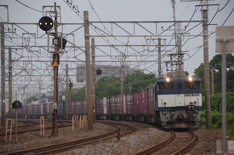 EF64 1047〔3075レ〕2020年6月11日、東田子の浦駅にてデンスケが撮影!愛知機関区のEF64 1047号機(JR貨物更新色)ですね。東海道の名古屋より関東方面方ではあまり運用が無い機関車ですね。3075レは撮影可能時間帯で東海道・東京口で見られる数少ない列車です。
